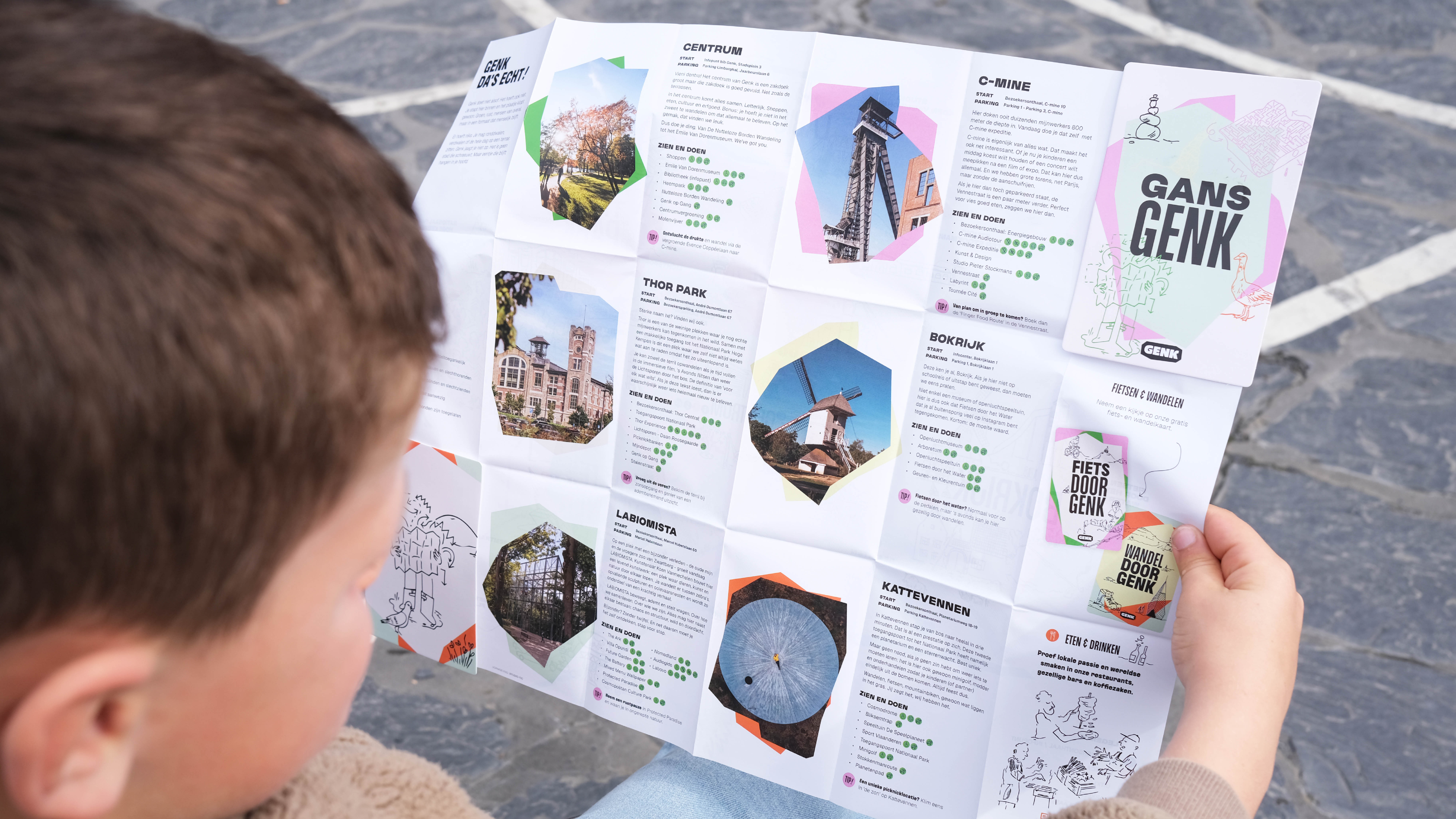 Voor @visitgenk mocht Studio-tic de vormgeving en het concept uitwerken voor hun nieuwste toeristisch product “Mappie”. Een kleurrijke zoektocht naar de Genkse Big 6! Van de tapir in Labiomista tot de raket in Kattevennen. Alles gebundeld in een handig mapje, met postkaartjes, stickers, een magneet, wandel- en fietskaartjes, bingo lijstjes en zoveel meer.